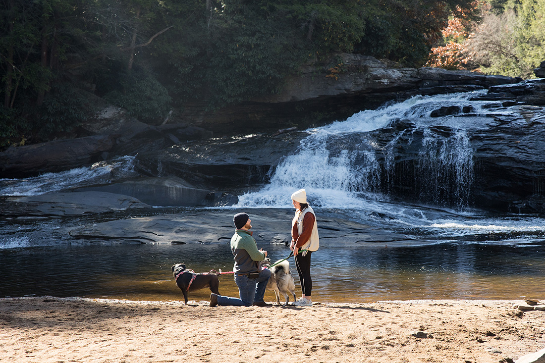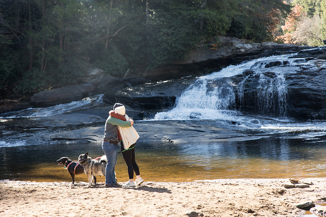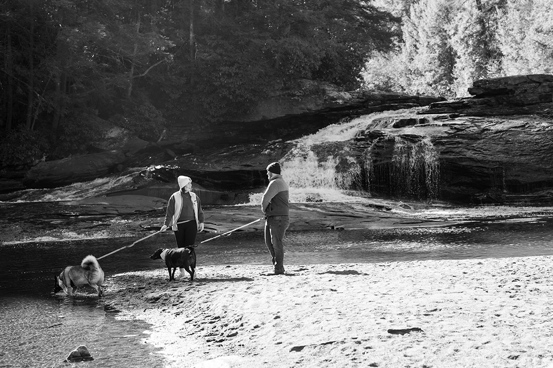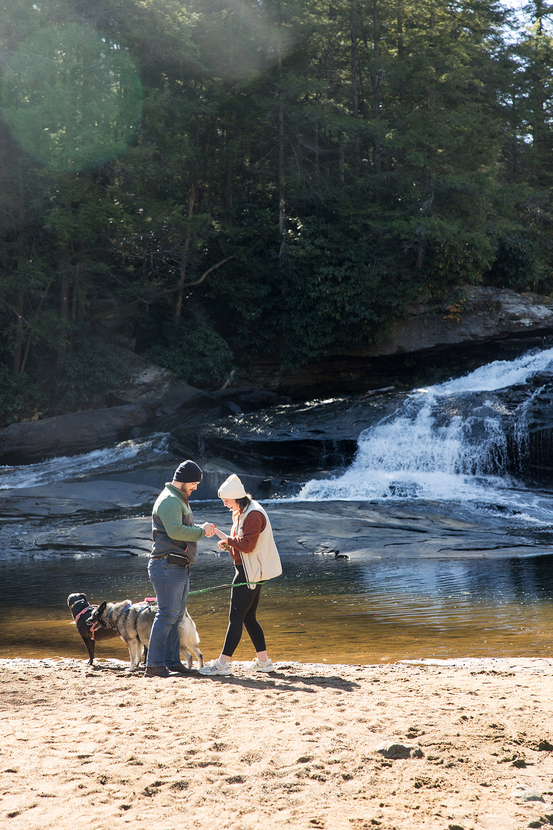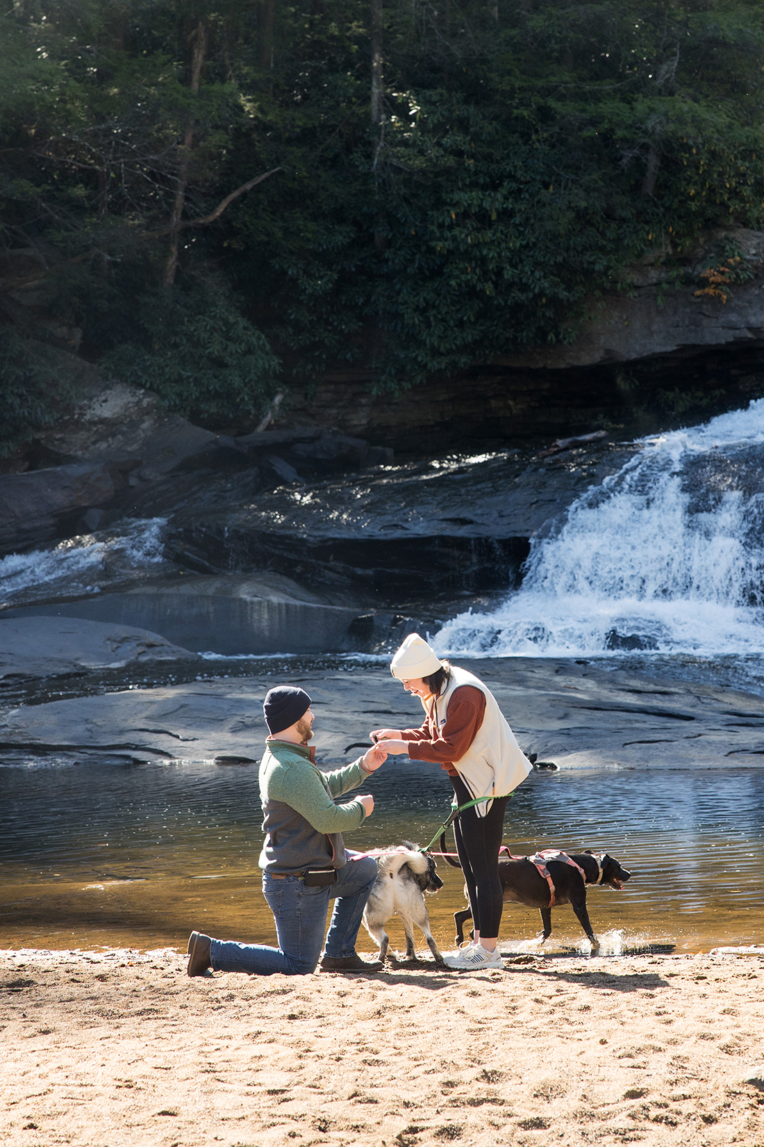 This was the first time I photographed a proposal at Swallow Falls waterfall. When the water is low, this spot is accessible…and really, the exposed sand is key when getting down in front of Swallow for a photo. If the water level is high, this waterfall rages and the kayakers relish in it.