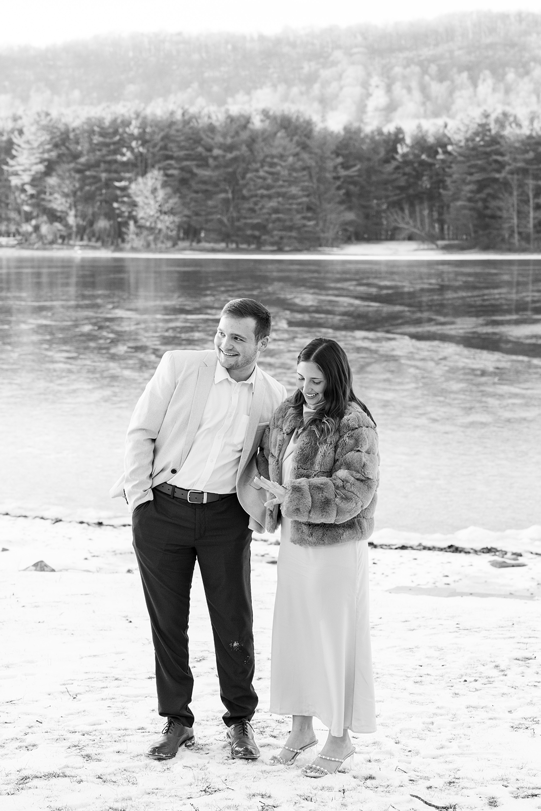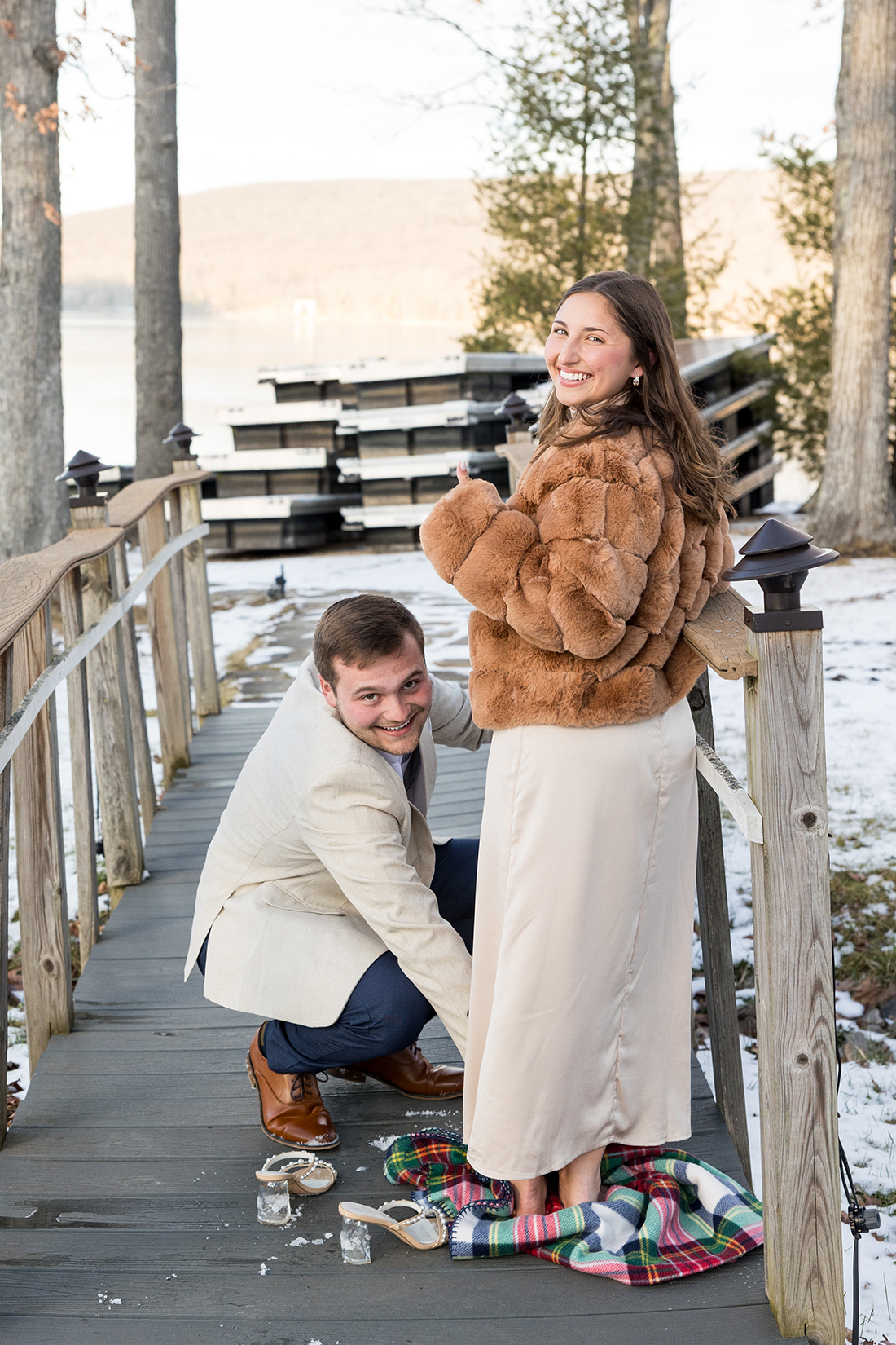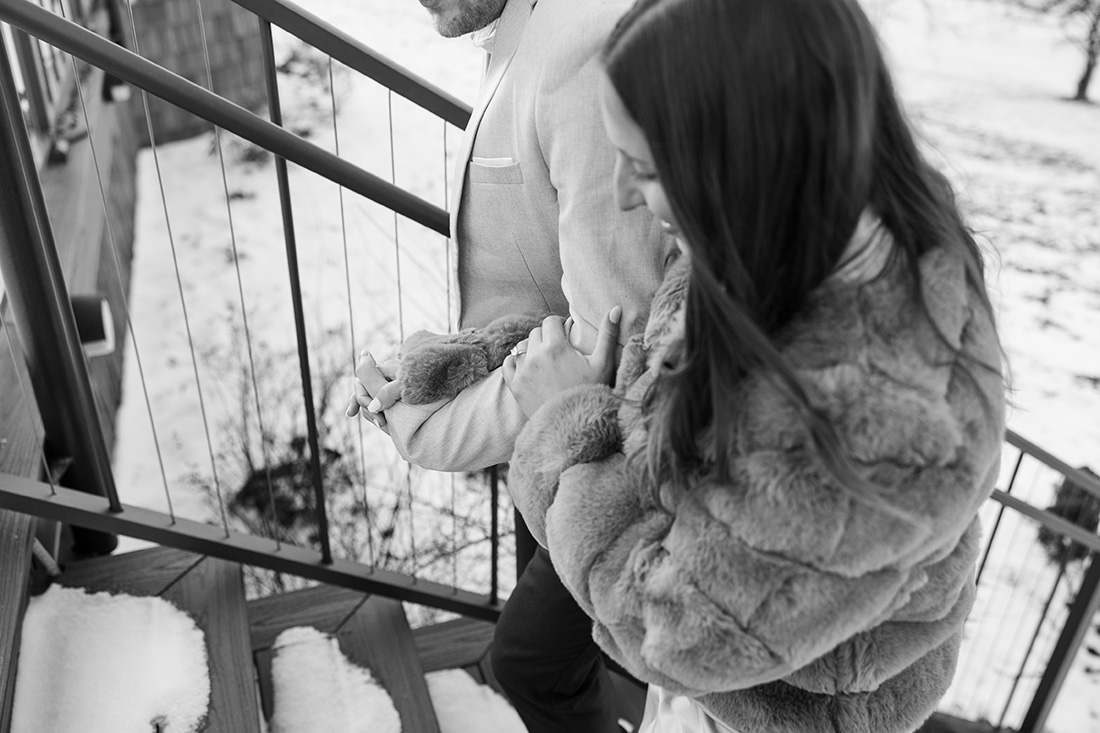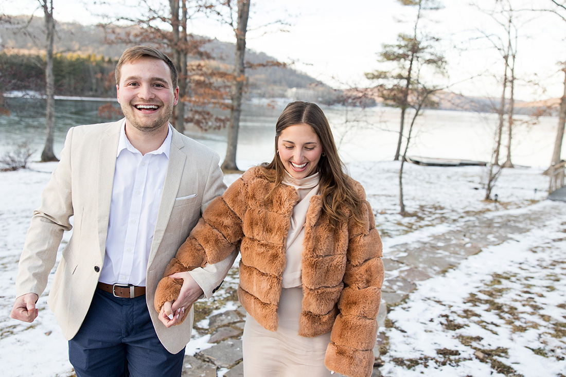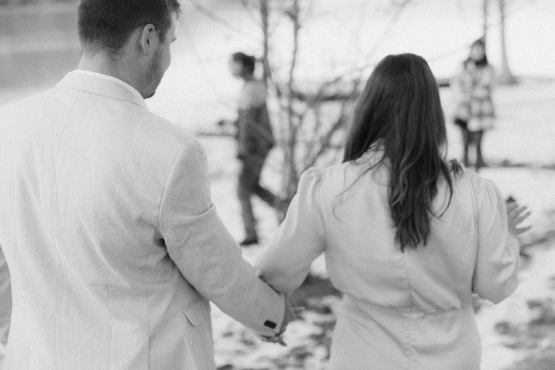 The whole family was in on it so they knew that after that family photo was taken they needed to step back to leave room for the moment. Jonathan proposed, Elizabeth was so darn excited and spent the rest of our time together snapping more family photos, having the two of them smile together, and navigating snow and cold + open-toed shoes and not enough layers of clothing, ha!